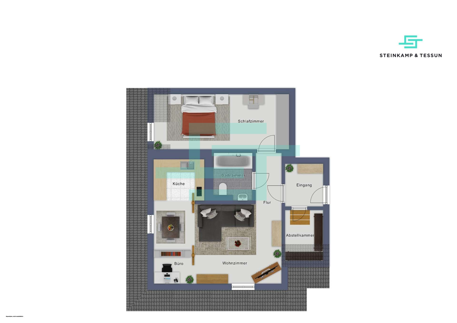 Dieses Apartment wird "voll möbliert" übergeben, inklusive Bett, Sideboard, Tisch mit 2 Stühlen, Sofa, Beistelltisch, TV-Board und TV-Gerät und einem cleveren Raumtrenner – einziehen und wohlfühlen!
