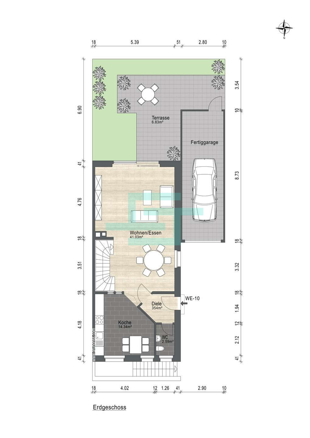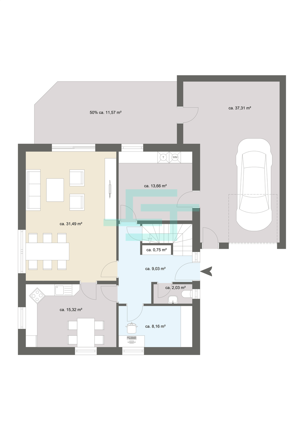 - Gäste-WC und Abstellräume