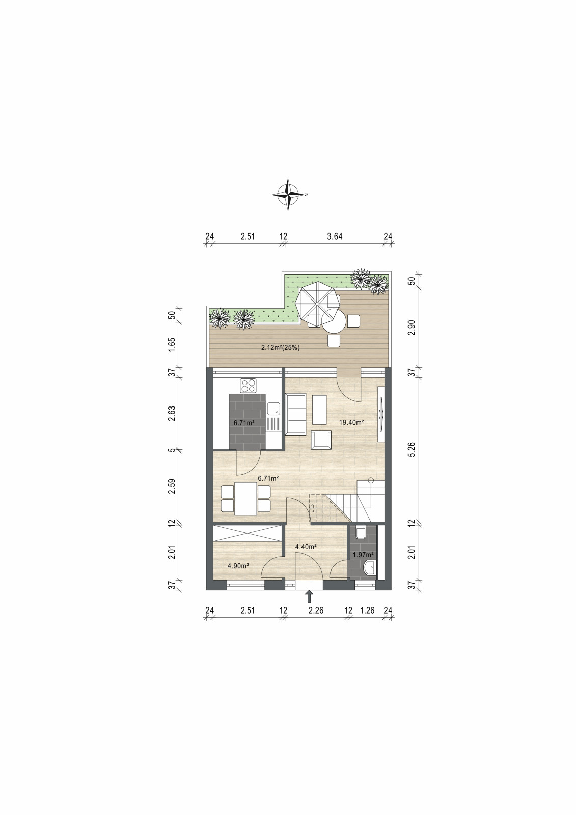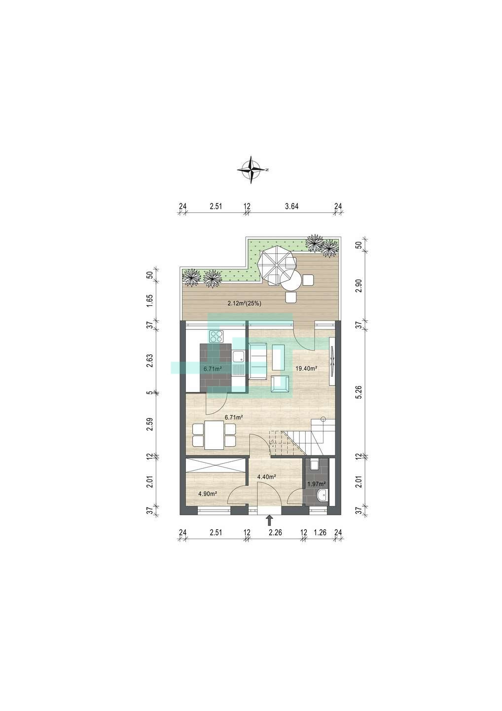- Überdachte Terrasse mit rund 30 Quadratmetern