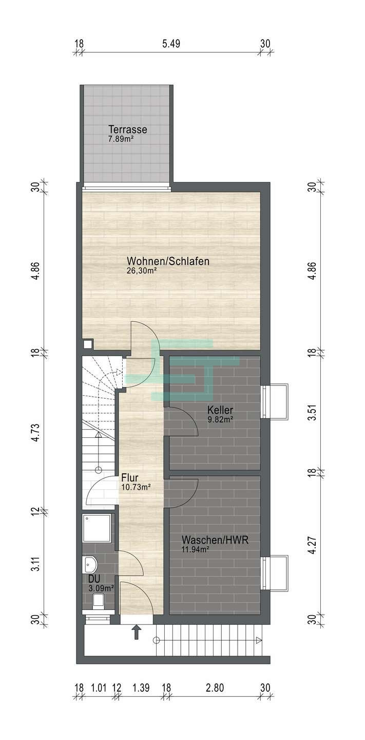 Wohnung 2 - EG: 38 m² - 248,40 €